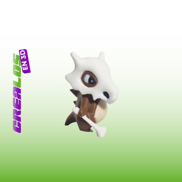 Figura impresa en 3D inspirada en Cubone, uno de los Pokémon más queridos por su diseño único y su característico casco óseo.