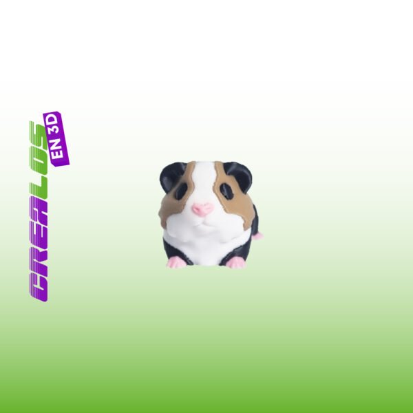 Esta figura representa a un adorable cuy (o hamster), modelado con forma compacta y detalles suaves que lo hacen ver tierno y expresivo. Ideal para amantes de los animales y coleccionistas de figuras miniatura. Fabricado en impresión 3D con materiales ligeros y resistentes, ofrece una apariencia realista gracias a su combinación de colores blanco, café y negro.