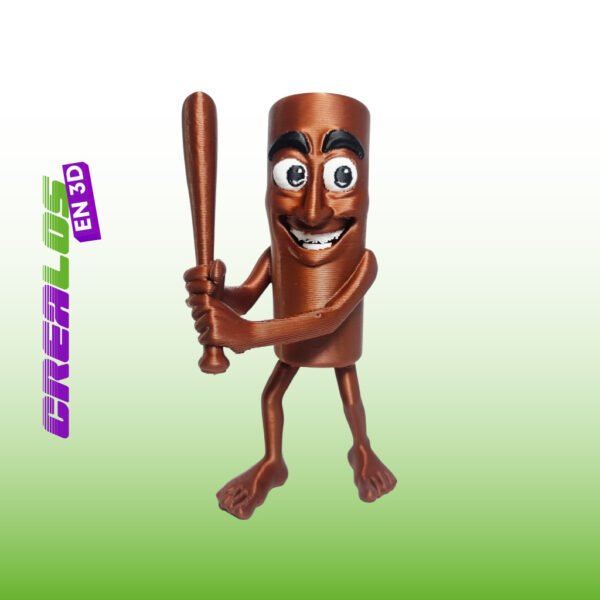 Cada figura es impresa en 3D con filamento PLA metálico color cobre, ofreciendo un acabado brillante y resistente, con detalles expresivos que realzan su mirada intensa y sonrisa desbordante.