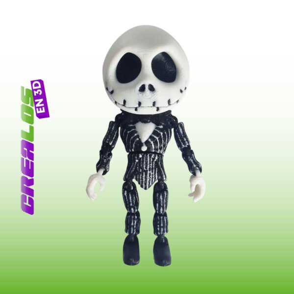 Figura articulada de Jack Skellington impresa en 3D, con detalles fieles y acabado artesanal.