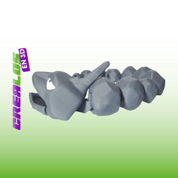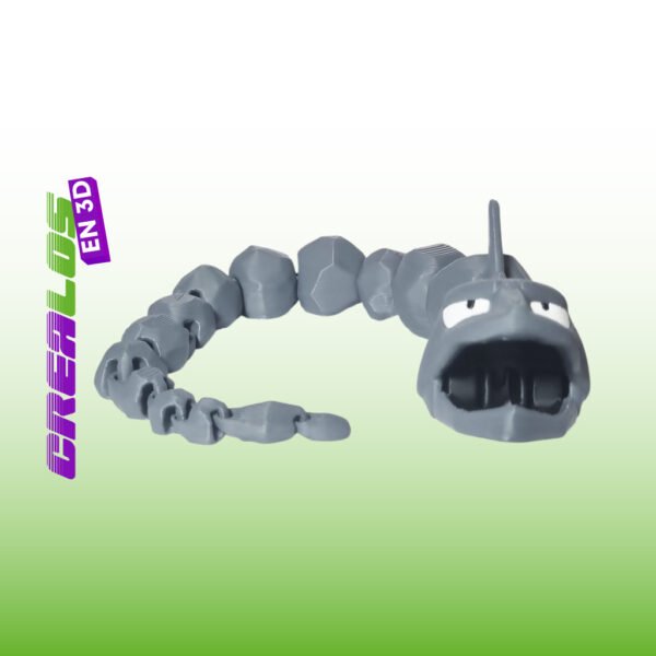 Figura articulada de Onix, el icónico Pokémon de tipo Roca/Tierra. Su cuerpo segmentado permite un movimiento fluido y natural, replicando la forma serpentina característica de este Pokémon.