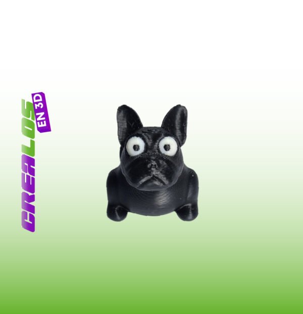 Mini figura inspirada en un bulldog francés de tono negro, con expresión simpática y ojos grandes que lo hacen irresistible. Es un accesorio perfecto para decorar escritorios, repisas o regalar a amantes de esta raza. Se fabrica con materiales PLA mediante impresión 3D, garantizando durabilidad y detalle.