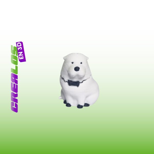 Figura inspirada en un perro maltés con pose tranquila y detalles suaves, perfecta para amantes de los animales y quienes desean decorar su espacio con una pieza tierna y minimalista. Su diseño limpio y su corbatín negro lo hacen destacar como un pequeño adorno elegante.